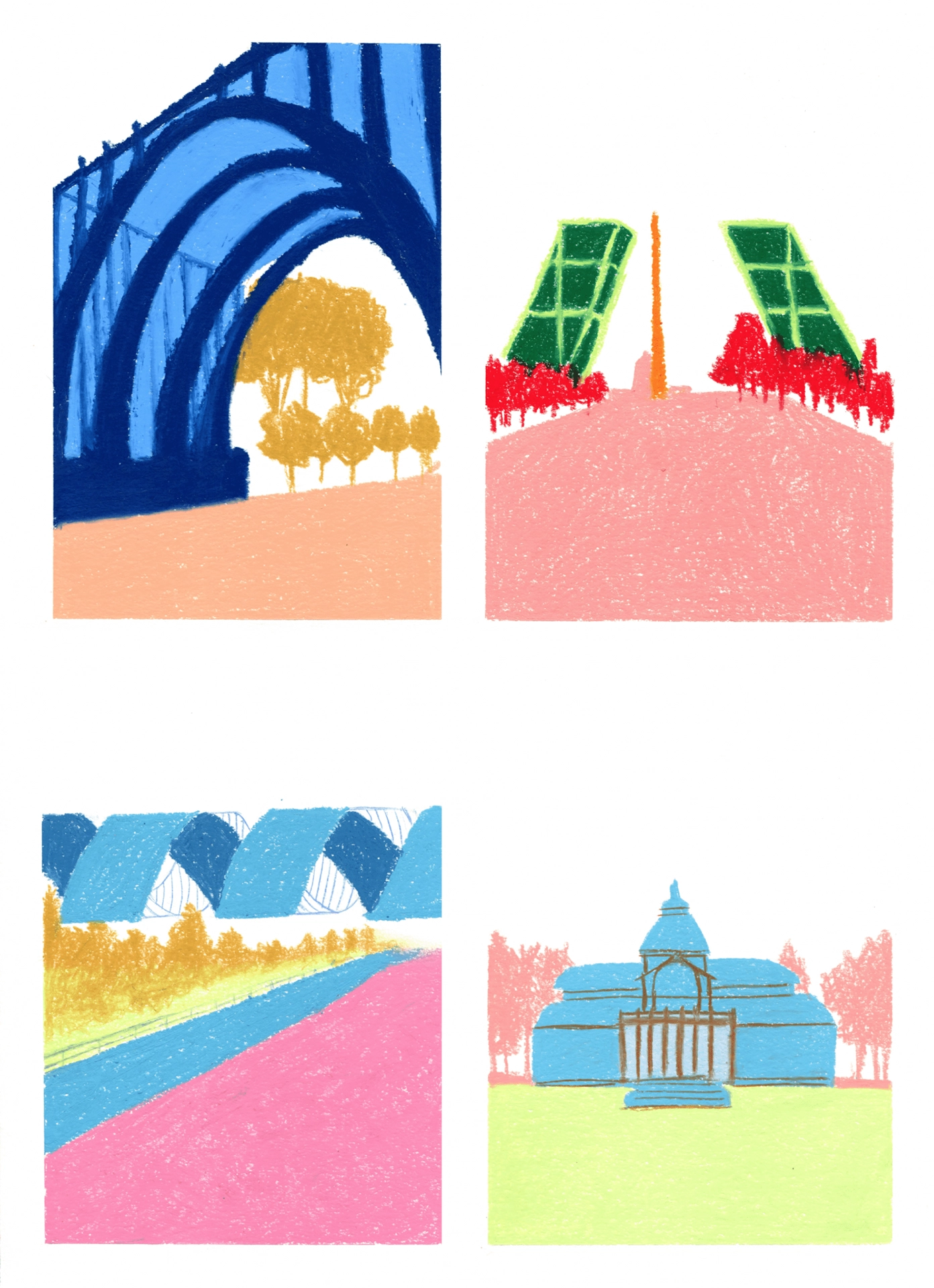 Four illustrations from a series of the city of Madrid. A different vision on some of the most iconic buildings of the city.